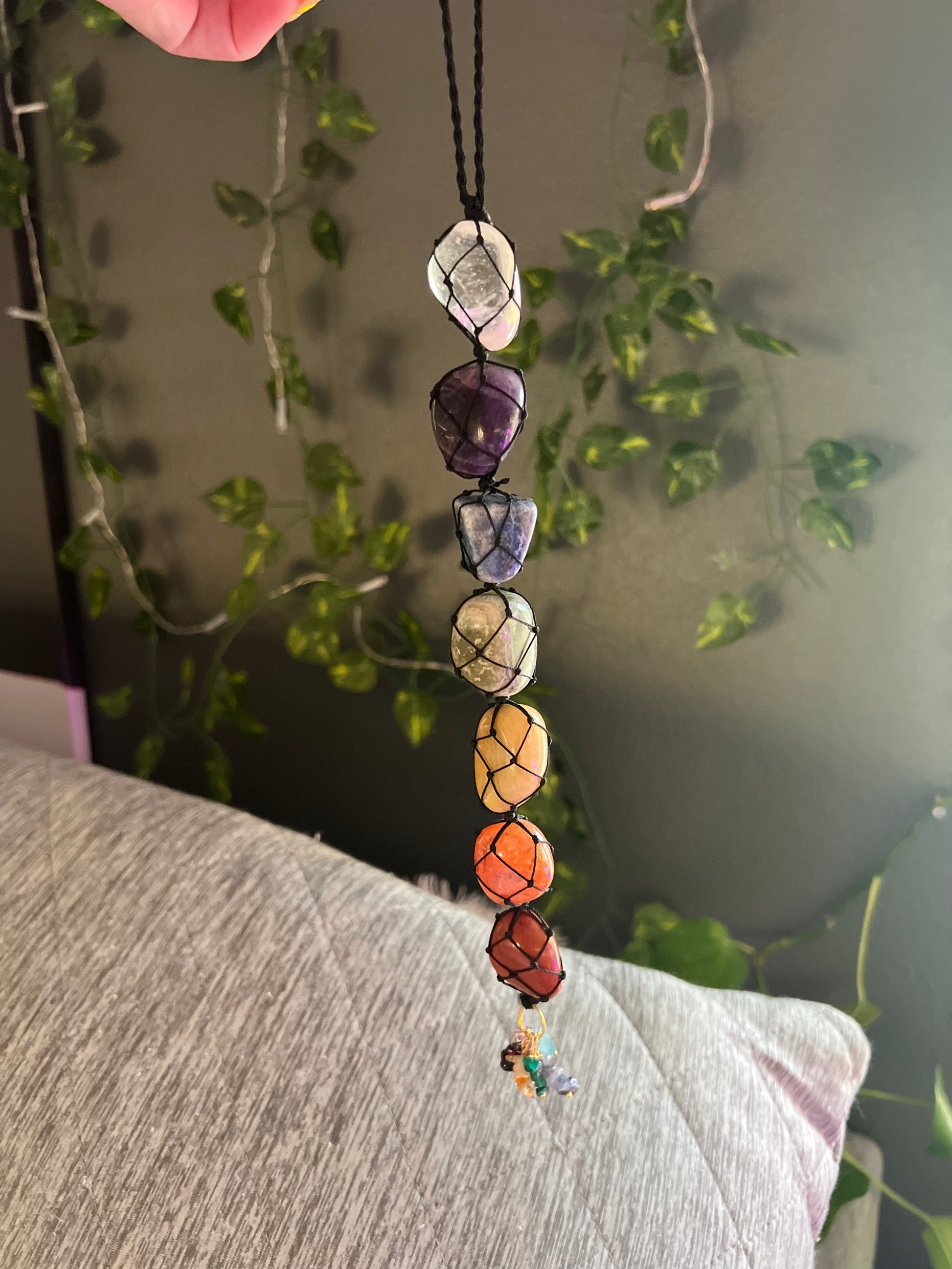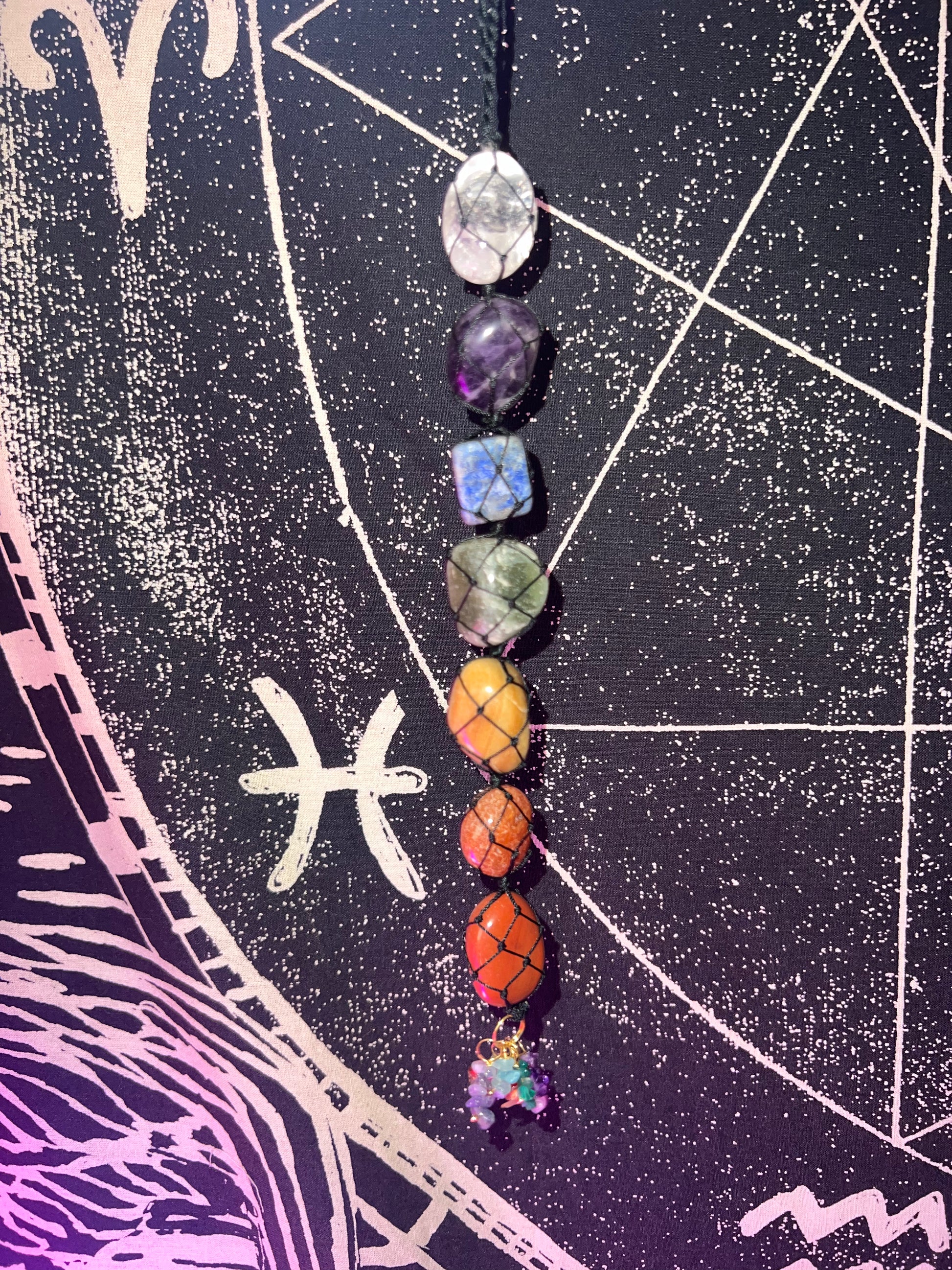 clear quartz, amethyst, lapis lazuli, green aventurine, yellow jasper, carnelian, red jasper