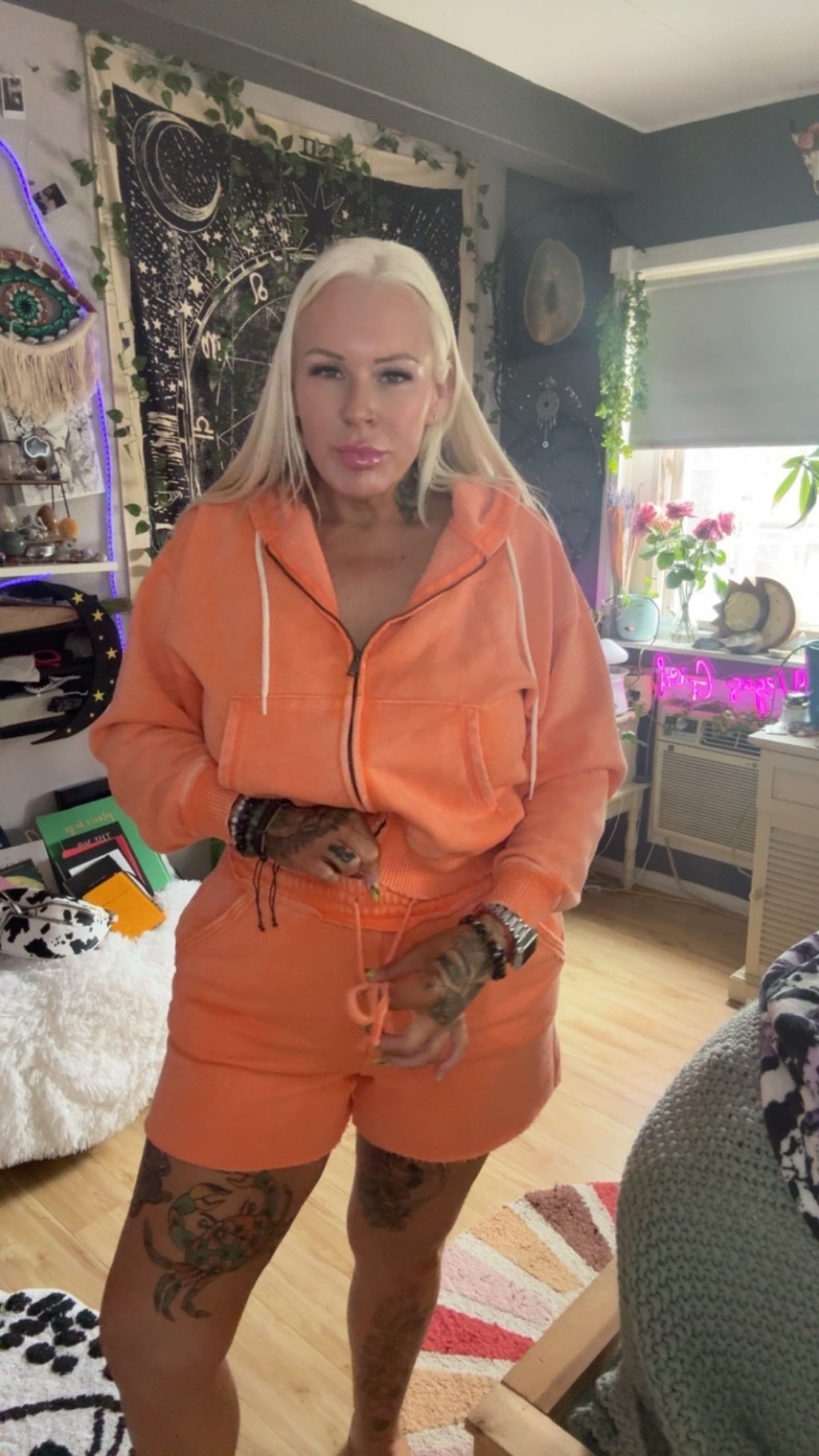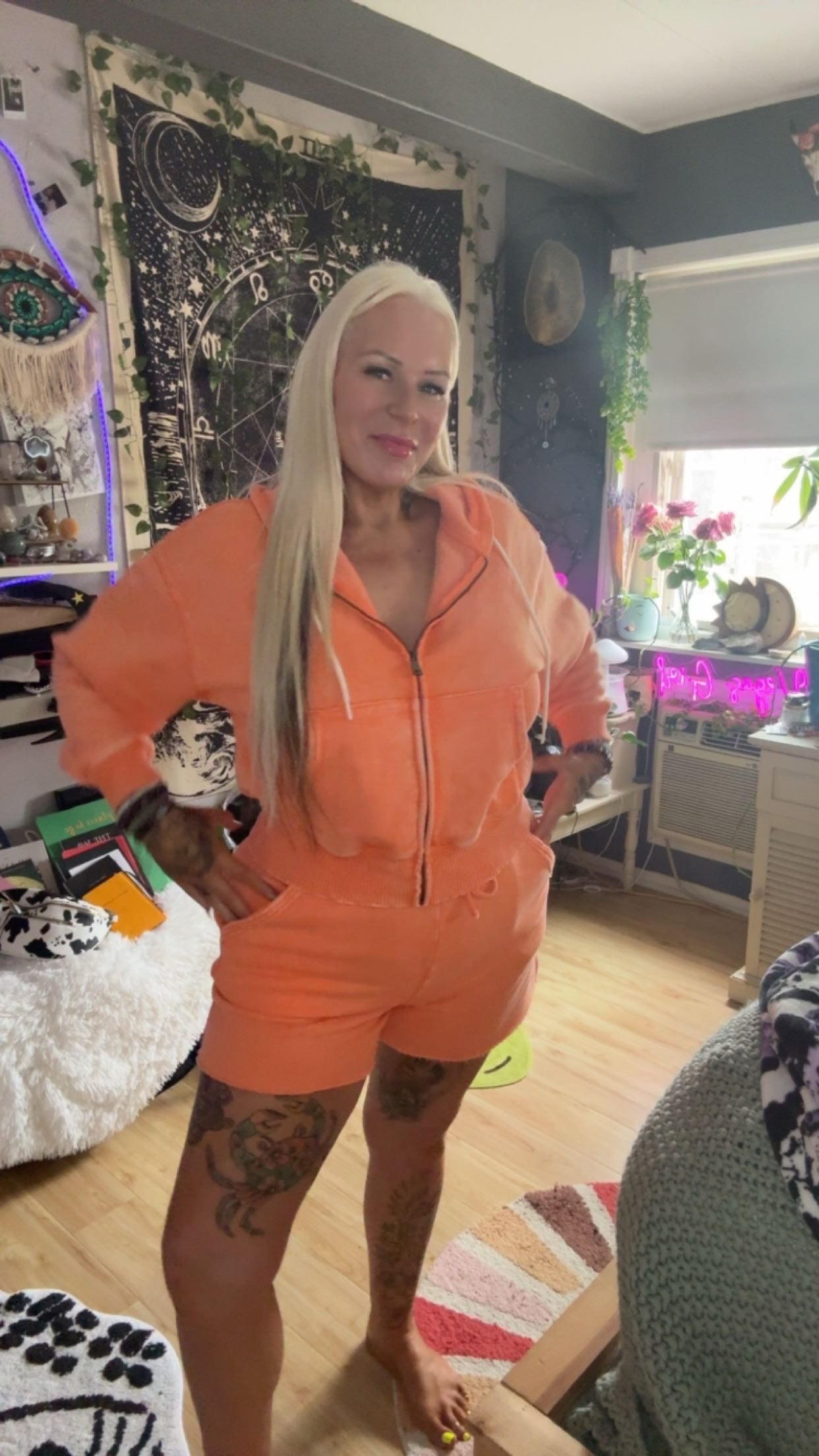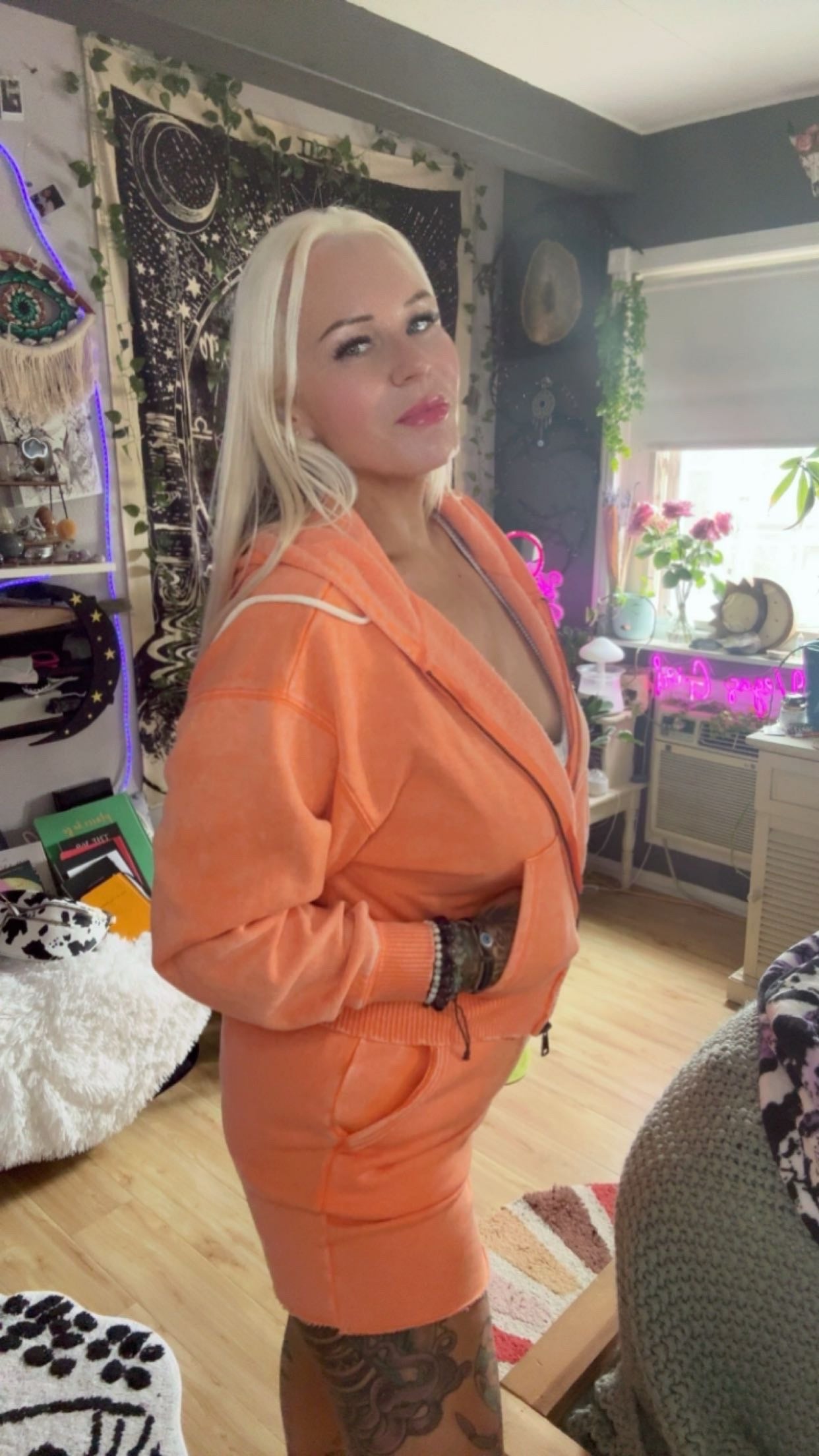 Acid washed bright(er) orange. Spring Summer vibes!!!! The softest set!
