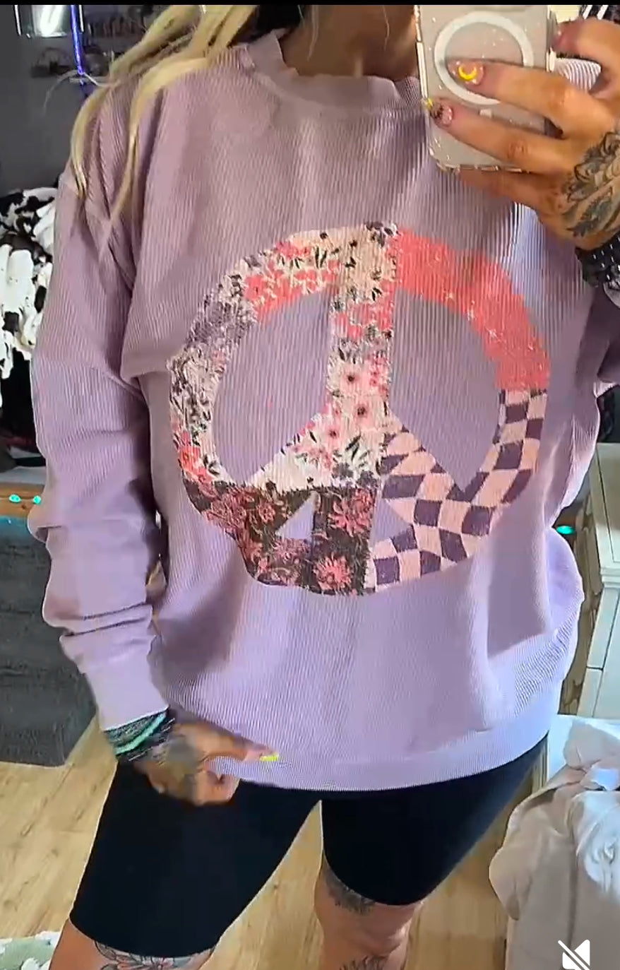 Boho Floral Peace Graphic Corduroy Sweatshirt