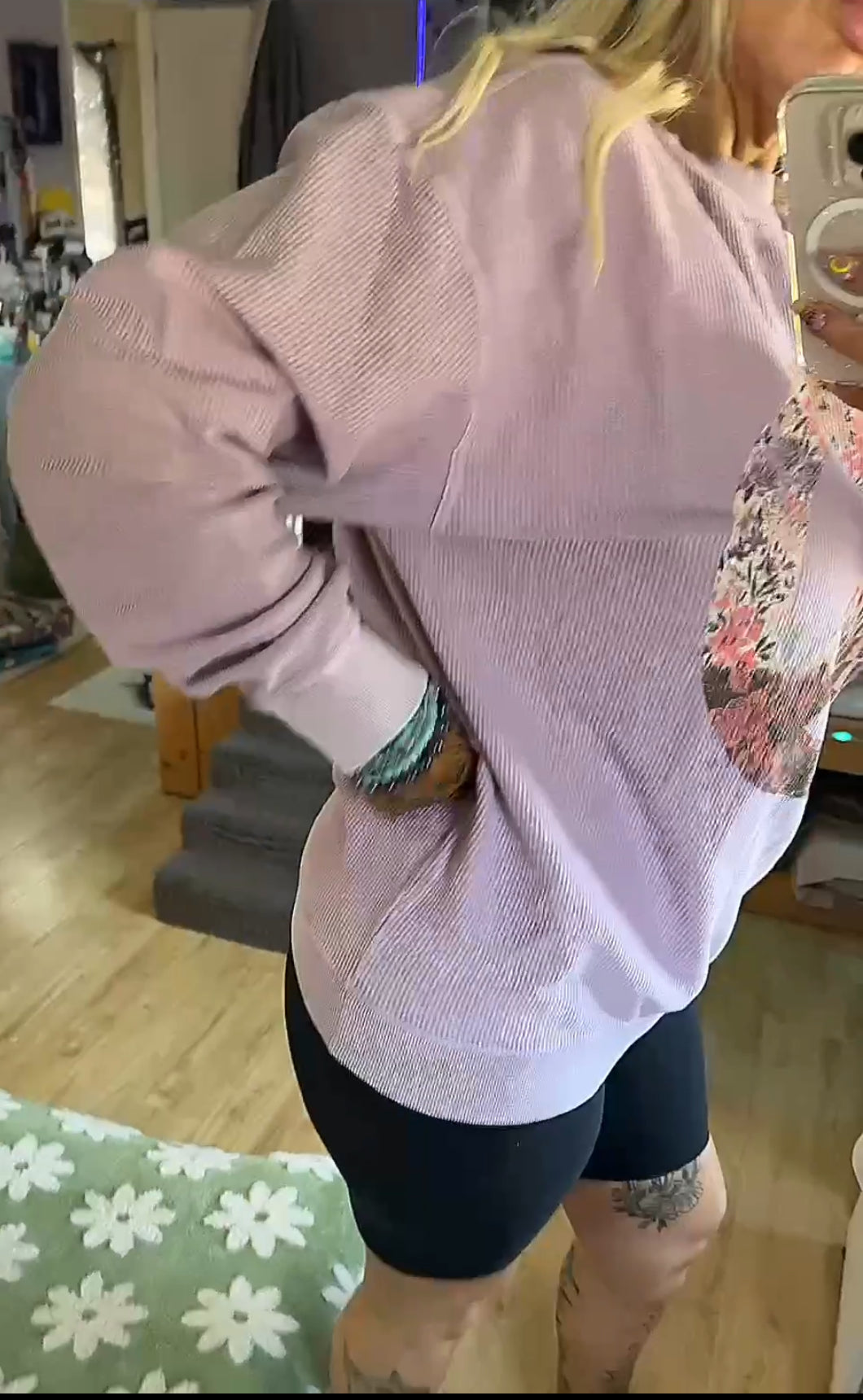 This Lilac Colored Sweatshirt is a Vegas Girl Inspired piece! the comfort level is 10/10. Boho Fashion, quilted peace graphic...